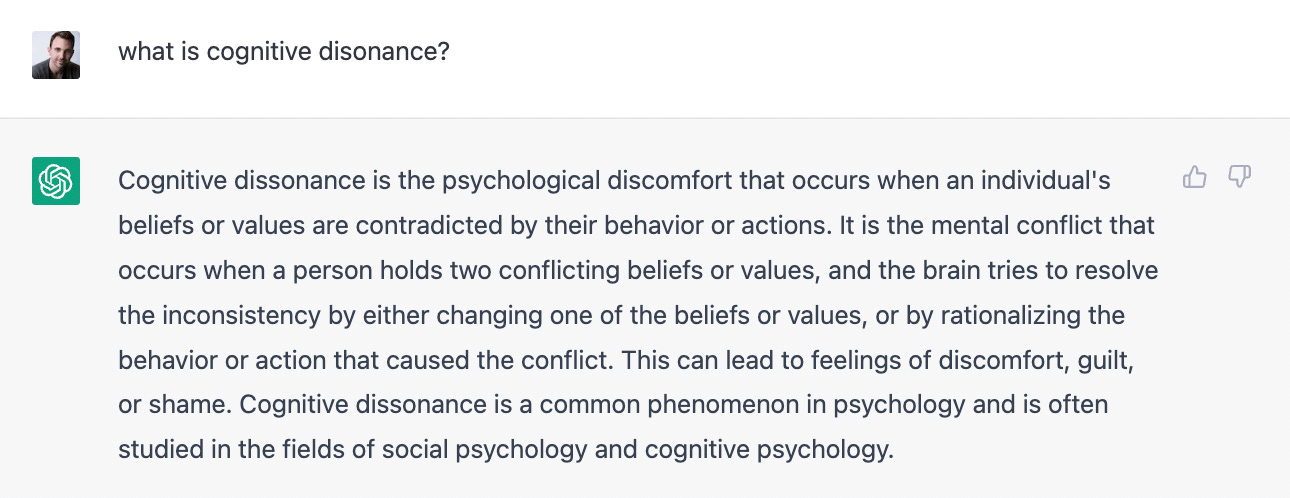 And to follow up, it also captured the psychological concept of cognitive dissonance well (despite my poor spelling).